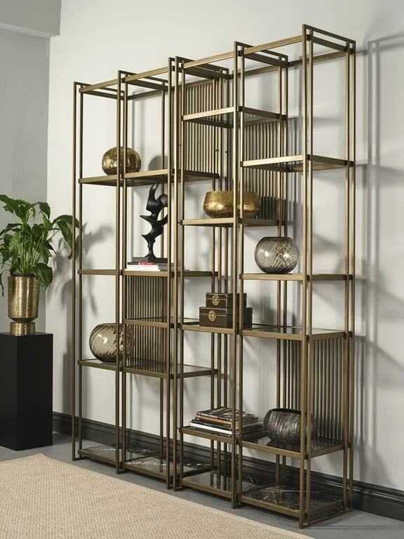 Ölçüler: 190 cm x 44 cm x 250 cm (Genişlik – Derinlik – Yükseklik) Malzeme : Eskitme Pirinç, Cam, Mermer / Kestane Ağacı